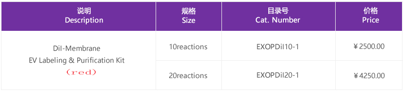 With a highly specific membrane labeling and very low background levels, the kit can be used for most applications that require visualization of labeled EVs for tracking studies。