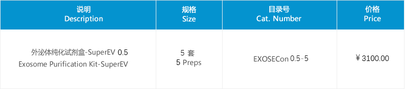 尺寸排阻色譜法(SizeExclusionChromatography,SEC)被認(rèn)為是從不同樣 本中分離和純化 EVs 的最佳方法之一,因為它能夠快速而有效地將 EVs 從復(fù)雜 樣本中分離出來,并能保持 EVs 的原始形狀和生物學(xué)功能。我們開發(fā)了用于分 離 EVs 的不同類型的 SEC 柱:SuperEV0.5,SuperEV1.0 和 SuperEV3.0,適合 不同樣本和體積的 EVs 分離。針對獲得的餾分再通過 EVs 濃縮柱,基于凝膠樹 脂層析實現(xiàn)餾分的濃縮和進(jìn)一步純化。此種組合得到的 EVs 不僅純度更高,優(yōu) 于超速離心,而且保持 EVs 的生物學(xué)功能,適合 EVs 蛋白質(zhì)質(zhì)譜分析,RNA 高 通量測序和 EVs 的體內(nèi)外細(xì)胞實驗等。另外,還可用于大量制備適合于臨床應(yīng) 用的 EVs 產(chǎn)品。