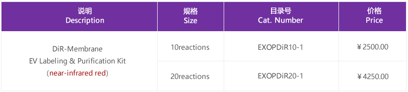 With the better tissue permeability and low spontaneous fluorescence of cells and tissues in the near infrared region, the kit shows higher specificity and sensitivity than tranditional visible dyes. It can be used to track the migration and distribution of labeled exosomes in vivo in real time.