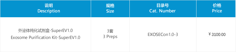 尺寸排阻色譜法(SizeExclusionChromatography,SEC)被認(rèn)為是從不同樣 本中分離和純化 EVs 的最佳方法之一,因?yàn)樗軌蚩焖俣行У貙?EVs 從復(fù)雜 樣本中分離出來(lái),并能保持 EVs 的原始形狀和生物學(xué)功能。我們開發(fā)了用于分 離 EVs 的不同類型的 SEC 柱:SuperEV0.5,SuperEV1.0 和 SuperEV3.0,適合 不同樣本和體積的 EVs 分離。針對(duì)獲得的餾分再通過(guò) EVs 濃縮柱,基于凝膠樹 脂層析實(shí)現(xiàn)餾分的濃縮和進(jìn)一步純化。此種組合得到的 EVs 不僅純度更高,優(yōu) 于超速離心,而且保持 EVs 的生物學(xué)功能,適合 EVs 蛋白質(zhì)質(zhì)譜分析,RNA 高 通量測(cè)序和 EVs 的體內(nèi)外細(xì)胞實(shí)驗(yàn)等。另外,還可用于大量制備適合于臨床應(yīng) 用的 EVs 產(chǎn)品。