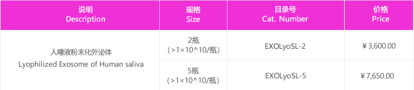 外泌體(Exosome)是由不同細胞分泌的直徑 30-150nm 的胞外膜性囊泡(Extracellular Vesicles,EVs)。外泌體普遍存在于多種體液中,其內(nèi)容物豐富,包括蛋白質(zhì)、脂質(zhì)和核酸等,在細胞間信息交流中發(fā)揮著重要作用,主要參與免疫抗原呈遞,神經(jīng)遞質(zhì)傳遞,脂類代謝及細胞信號轉(zhuǎn)導(dǎo)等過程,并與多種疾病的發(fā)生、發(fā)展、治療及預(yù)后密切相關(guān)。 潤基生物提供的超純外泌體粉末是通過濃縮柱和 SEC 柱(Size Exclusion Chromatography)連續(xù)濃縮和純化,然后經(jīng)過真空冷凍干燥獲得的。外泌體粉末可來自各種體液(血清、血漿、尿液、唾液、乳汁等)和細胞培養(yǎng)上清液。粉末化的外泌體需經(jīng)過總蛋白含量(BCA 法)和納米粒子跟蹤分析顆粒數(shù)的測定等驗證,與新鮮的外泌體相比,冷凍干燥不會改變外泌體蛋白質(zhì)和核酸的穩(wěn)定性,反而易于運輸且長期儲存(+4℃),復(fù)溶后仍然保持外泌體的完整形態(tài)和生物學(xué)功能。
